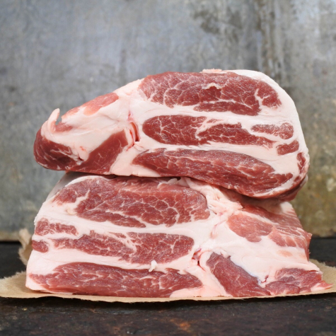 Iberico nekbraadstuk is prachtig gemarmerd varkensvlees en bij uitstek geschikt om pulled pork mee te maken. Het is wat vetter en droogt dus minder snel uit.